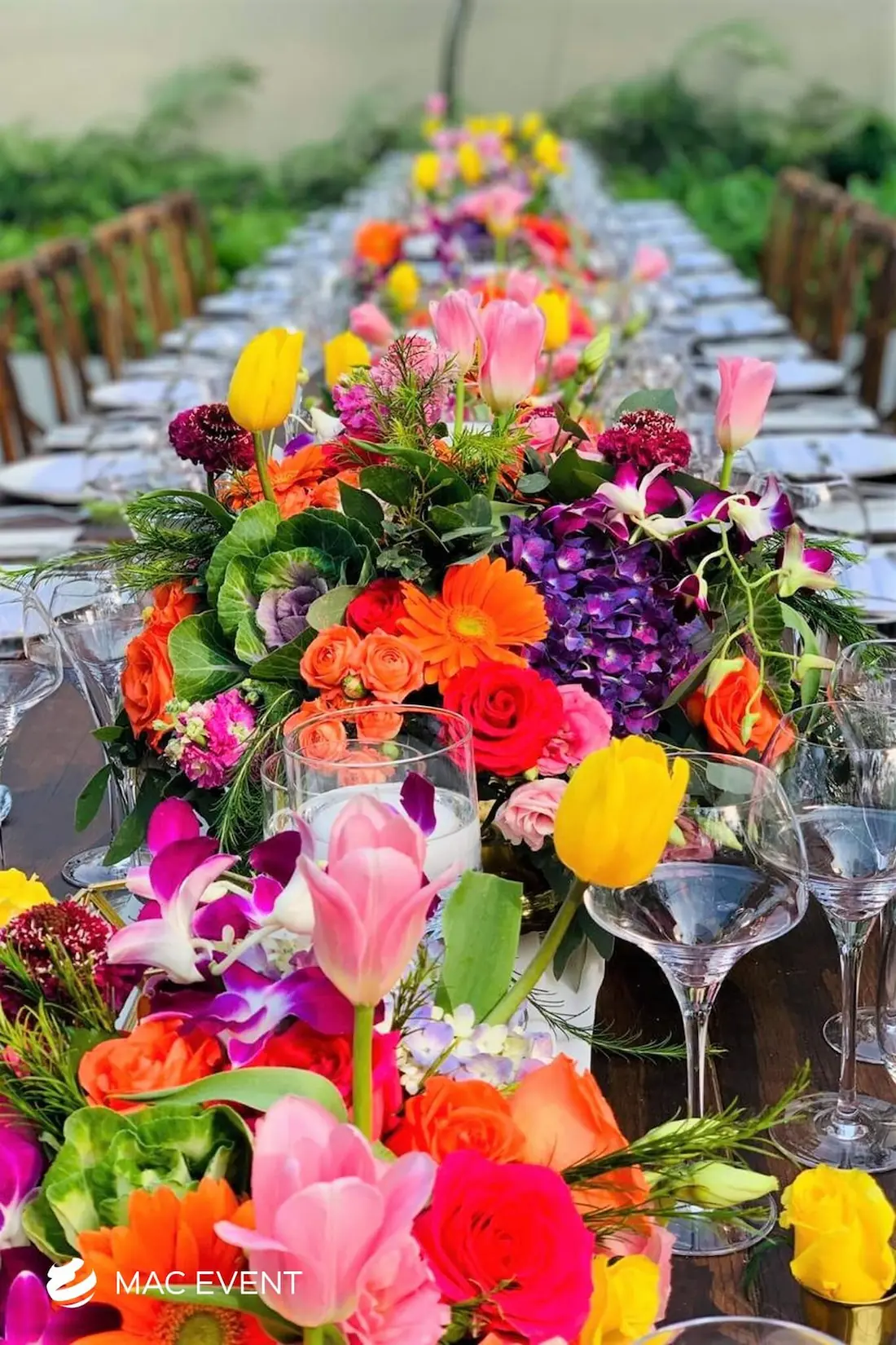 The long table centerpiece creates an elegant and cohesive look for weddings, parties, and corporate events in Mexico. Designed to complement extended dining tables, this event décor rental adds balance and sophistication to your setup. Whether styled with greenery garlands, candles, or floral arrangements, the long table centerpiece enhances the flow of your décor while keeping the space inviting and functional. Renting long table centerpieces in Mexico ensures professional design and a polished presentation that matches your event theme. For a refined and graceful atmosphere, this centerpiece is the perfect addition to any celebration.