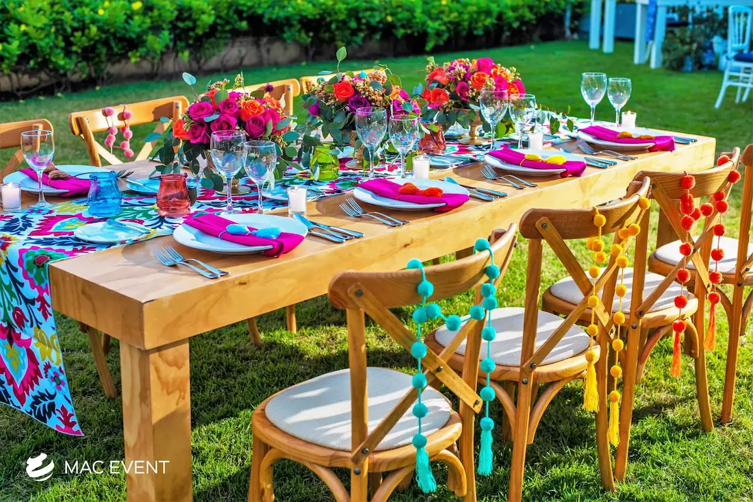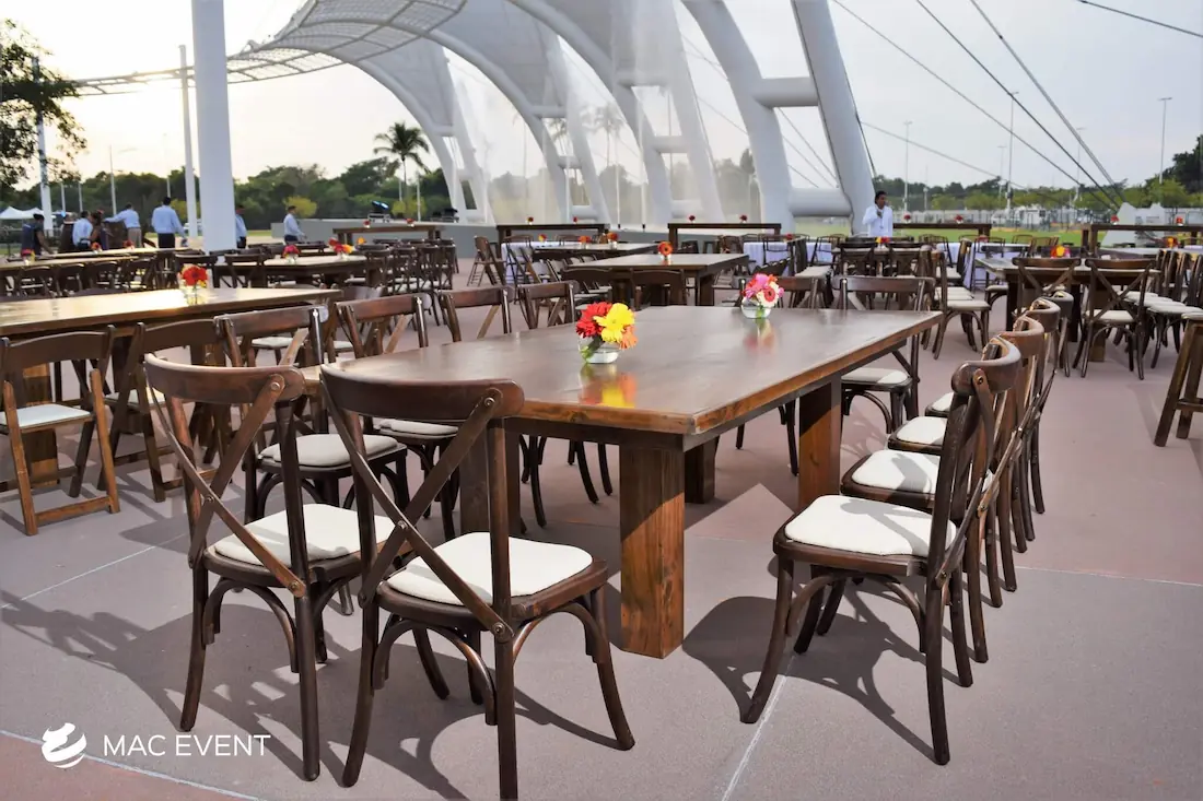 The cross back chair, also known as a x-back chair or farmhouse chair, is a timeless favorite for weddings, private parties, and elegant events in Mexico. Its rustic yet refined design blends perfectly with beach, garden, or boho-inspired settings, adding charm and character to any venue. Crafted from sturdy wood with a curved back for comfort, this cross back chair rental offers both beauty and practicality. Renting x-back chairs ensures a coordinated look that enhances your décor while keeping guests comfortable throughout the celebration. For a natural and sophisticated atmosphere, cross back chairs are the perfect choice for any event in Mexico.