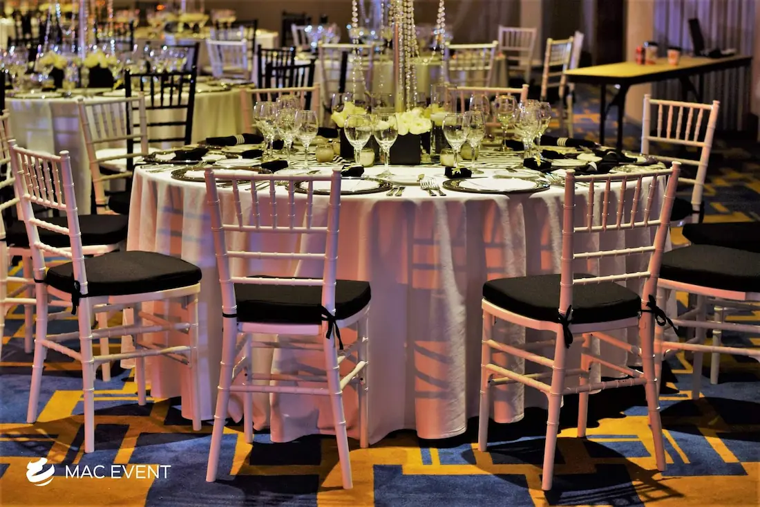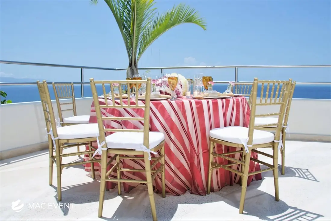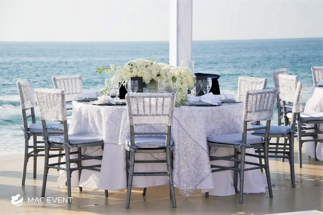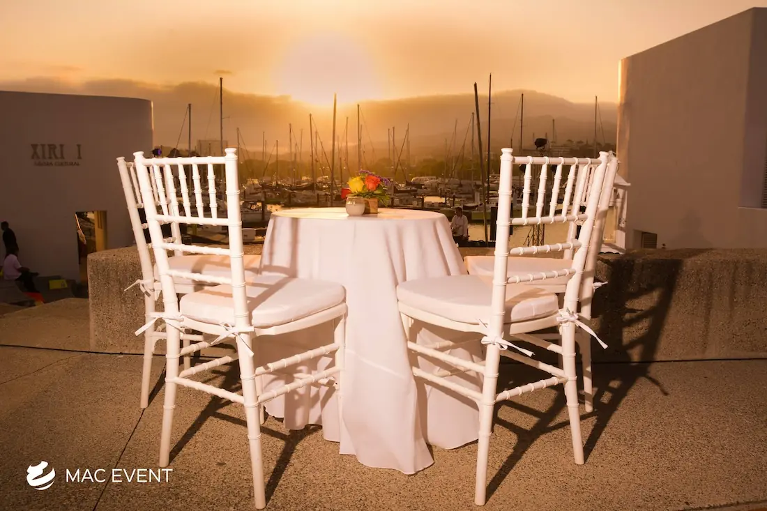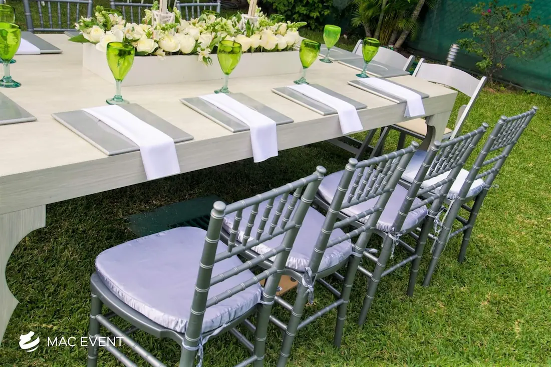 The resin chiavari chair, also known as a tiffany chair, is a popular choice for elegant weddings, private parties, and corporate events in Mexico. Its timeless design and glossy finish add a touch of sophistication to any setting, whether on the beach, in a garden, or at an indoor venue. Made from durable resin, this chiavari chair rental combines beauty and practicality as it is lightweight, sturdy, and suitable for any environment. Renting tiffany chairs ensures a coordinated and polished look that complements your décor while keeping guests comfortable. For style, comfort, and reliability, resin chiavari chairs are the perfect seating solution for any event in Mexico.