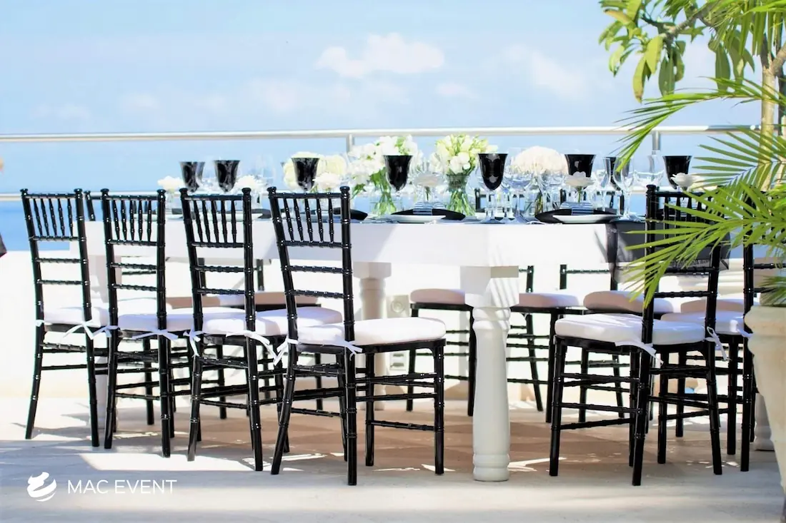 The wood chiavari chair, also known as a tiffany chair, brings warmth and elegance to weddings, parties, and corporate events in Mexico. Its natural wood finish and classic design make it a favorite for both indoor and outdoor settings. This chiavari chair rental offers a perfect balance of beauty and durability, providing sturdy and comfortable seating for guests. Renting wood tiffany chairs allows you to create a cohesive and refined atmosphere that complements any event style or décor. For those who value sophistication and timeless appeal, wood chiavari chairs are the ideal choice for creating a memorable event in Mexico.