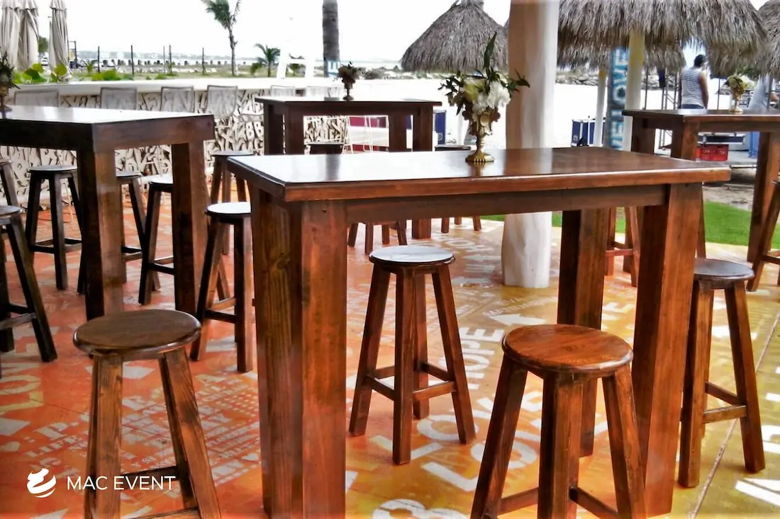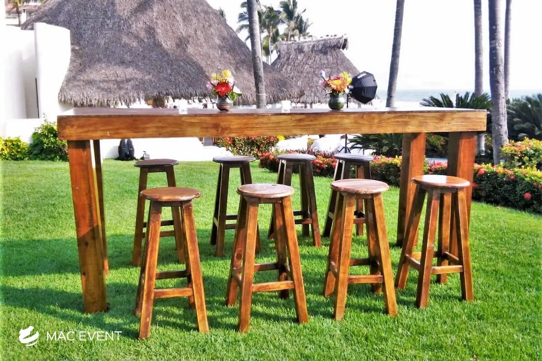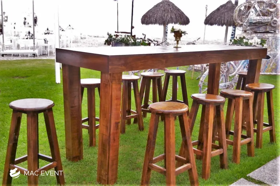 The rustic bar stool adds warmth and character to weddings, parties, and corporate events in Mexico. With its natural wood finish and handcrafted look, this bar stool rental creates a relaxed yet elegant atmosphere that fits perfectly with beach, boho, or countryside themes. Ideal for cocktail areas, outdoor receptions, and casual lounges, rustic bar stools combine comfort and charm while complementing your event décor. Renting these stools provides a cohesive, inviting setup that encourages guests to gather and enjoy the moment. For an authentic and stylish touch, the rustic bar stool is a perfect addition to any event in Mexico.