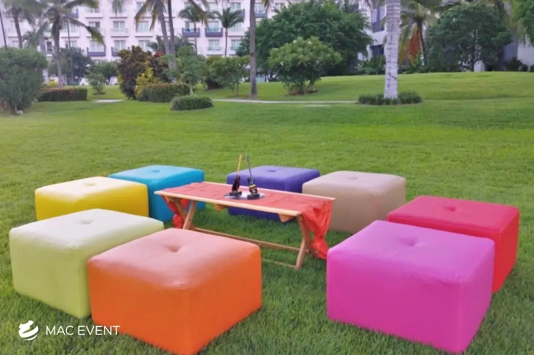 The classic lounge brings timeless elegance and comfort to weddings, parties, and corporate events in Mexico. With its refined design and neutral tones, this event lounge rental creates an inviting space where guests can relax and enjoy the celebration. Perfect for receptions, cocktail areas, or outdoor gatherings, the classic lounge pairs beautifully with any décor style, from traditional to modern. Renting classic lounges in Mexico ensures a polished, coordinated look that enhances your event’s atmosphere. For a touch of sophistication and effortless comfort, the classic lounge is a perfect choice for any occasion.
