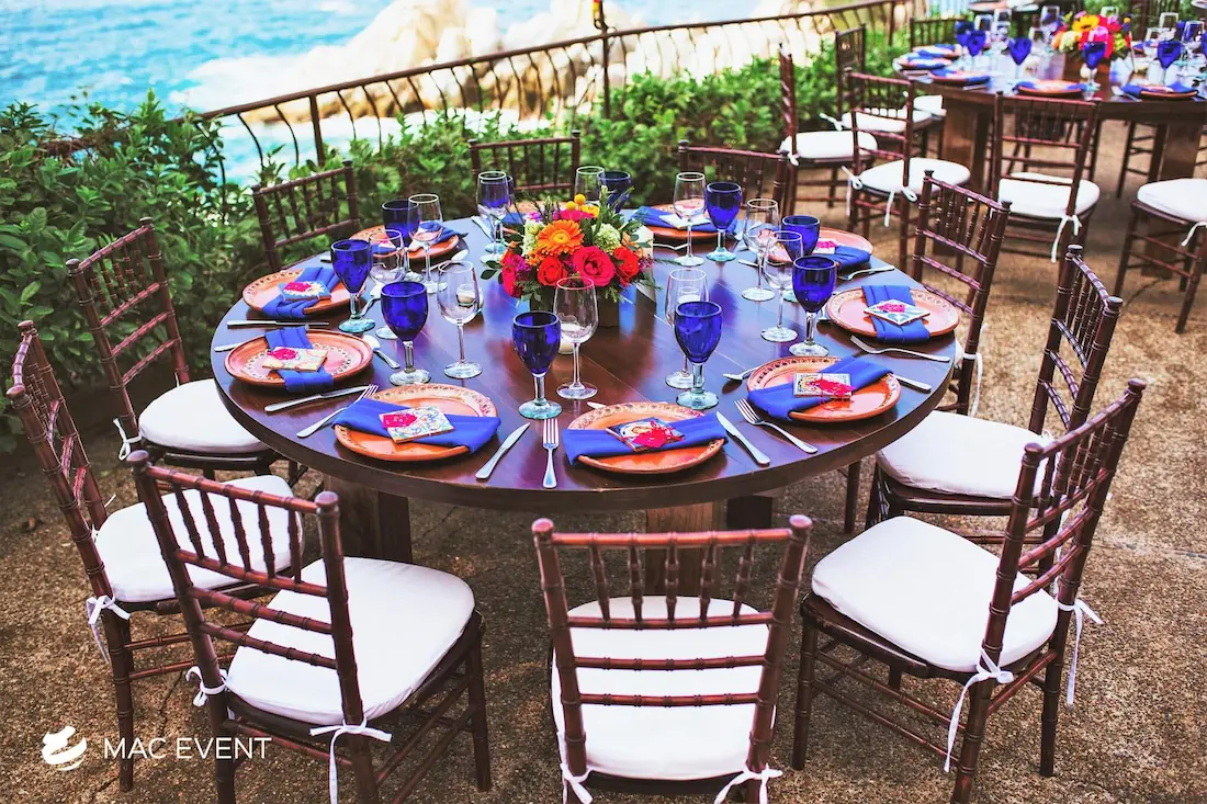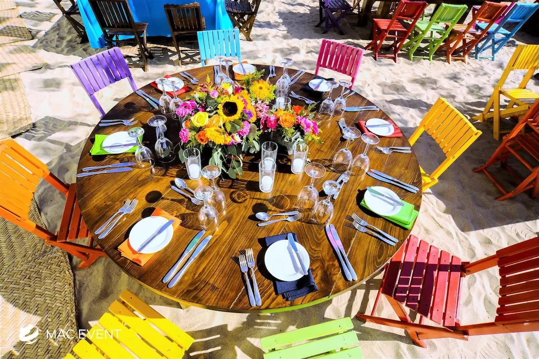 The round rustic table is perfect for weddings, outdoor parties, and elegant gatherings in Mexico. Its natural wood finish and handcrafted charm create a warm, inviting atmosphere that pairs beautifully with beach, garden, or boho-inspired themes. This event table rental combines style and durability, offering plenty of space for décor, dining, or floral arrangements. Renting round rustic tables in Mexico adds texture and authenticity to your setup while maintaining comfort and visual harmony. For those who want a touch of natural elegance, the round rustic table is an ideal choice to enhance any celebration.