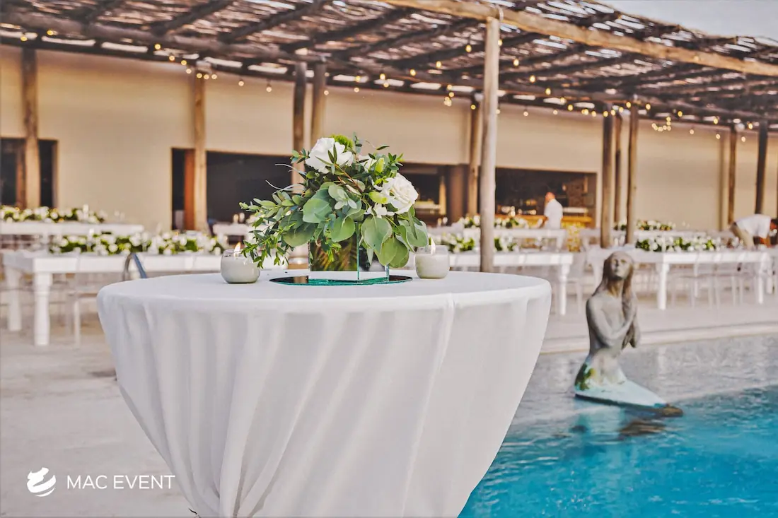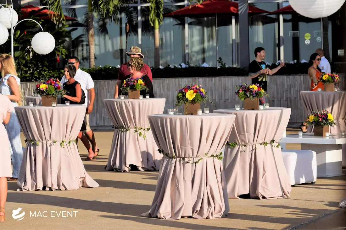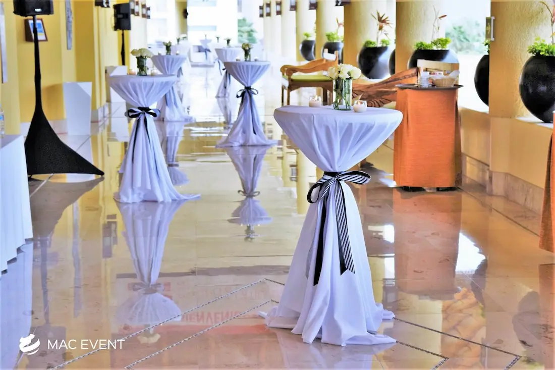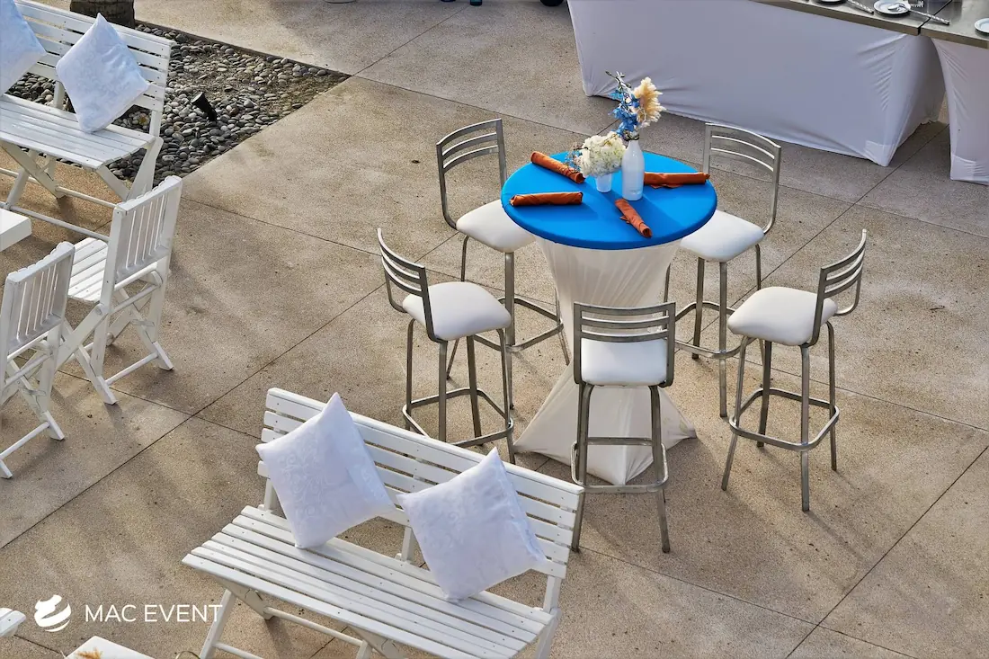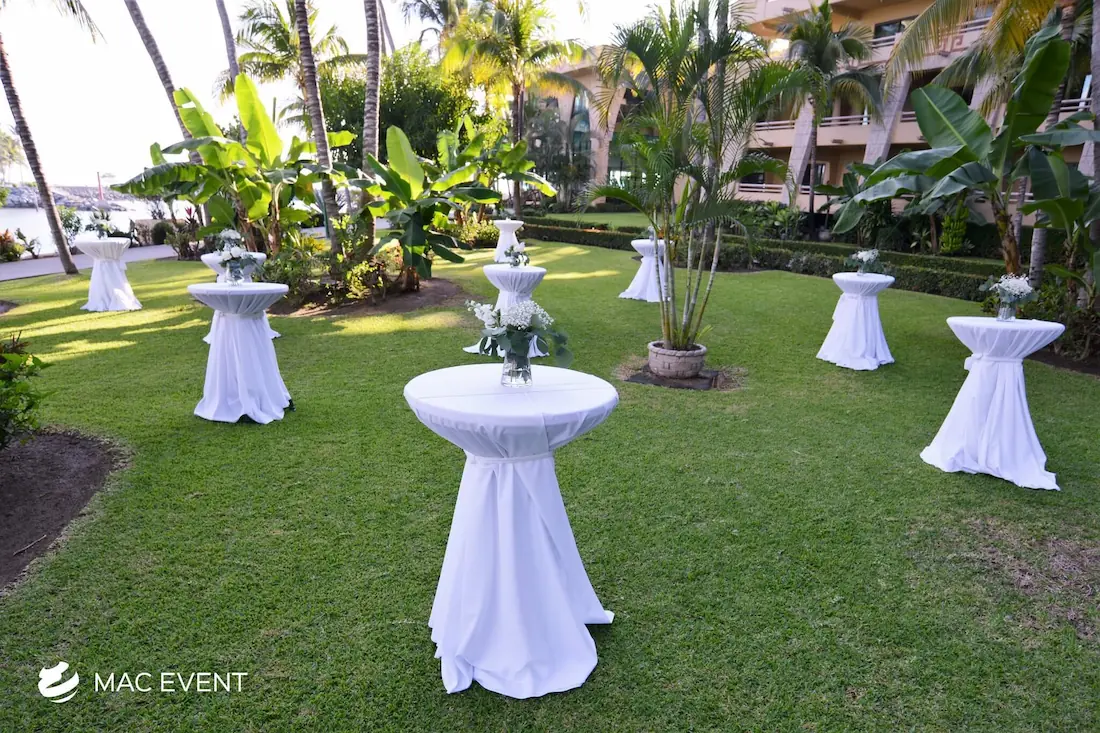 The classic cocktail table adds elegance and versatility to weddings, parties, and corporate events in Mexico. With its clean lines and timeless design, this event table rental fits beautifully in both indoor and outdoor spaces, creating the perfect area for guests to enjoy drinks and conversation. Ideal for cocktail hours, receptions, and networking events, the classic cocktail table offers a polished look that complements any décor style. Renting classic cocktail tables in Mexico ensures a cohesive and stylish setup that balances sophistication with practicality, making your event both inviting and memorable.