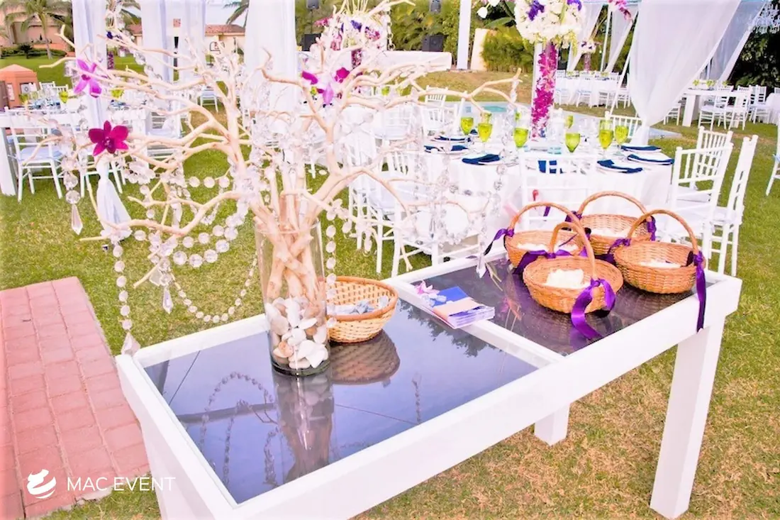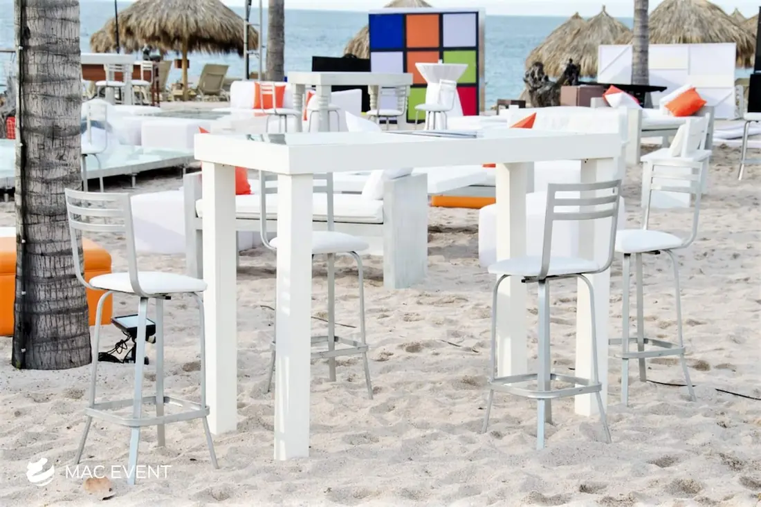 The wooden glass cocktail table combines natural beauty with modern elegance, making it a stylish choice for weddings, parties, and corporate events in Mexico. Its wooden base adds warmth and character, while the glass top gives a sleek, refined finish that complements any décor. This event table rental works perfectly for cocktail hours, lounge areas, or receptions where you want to create a polished yet inviting atmosphere. Renting wooden glass cocktail tables in Mexico ensures a cohesive setup that blends sophistication with comfort. For an event that stands out with style and balance, this table is an ideal addition.