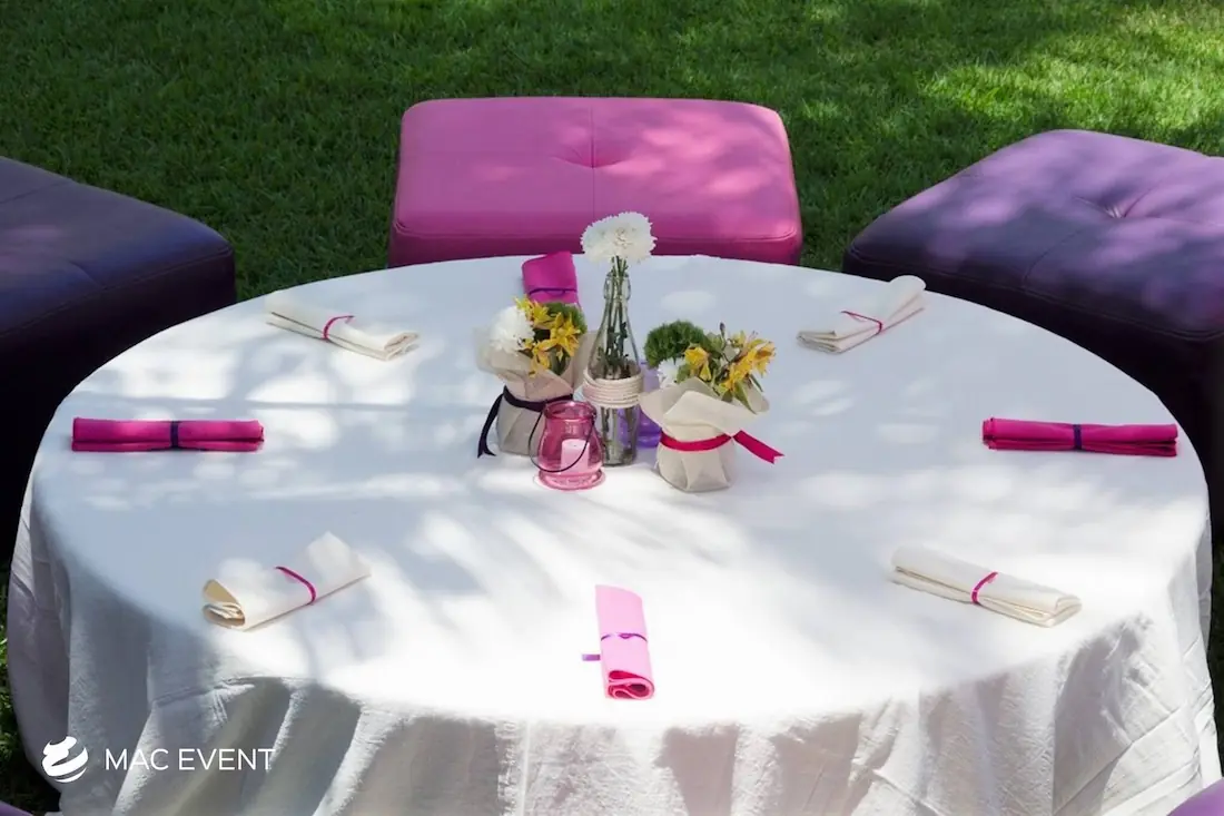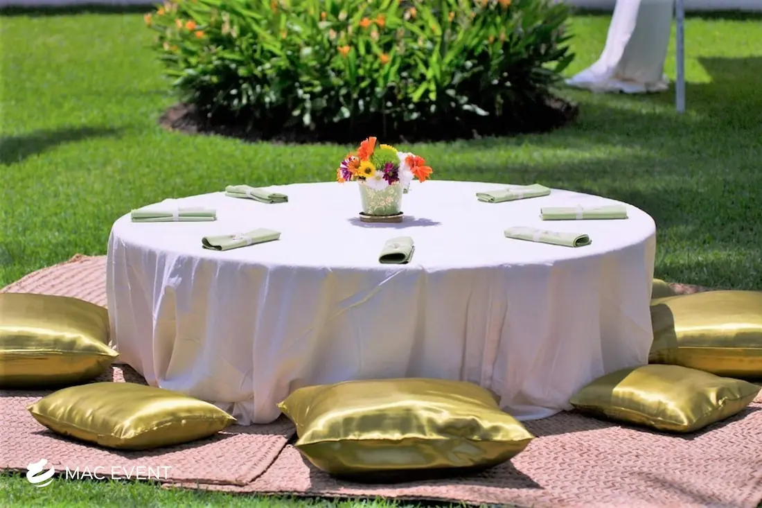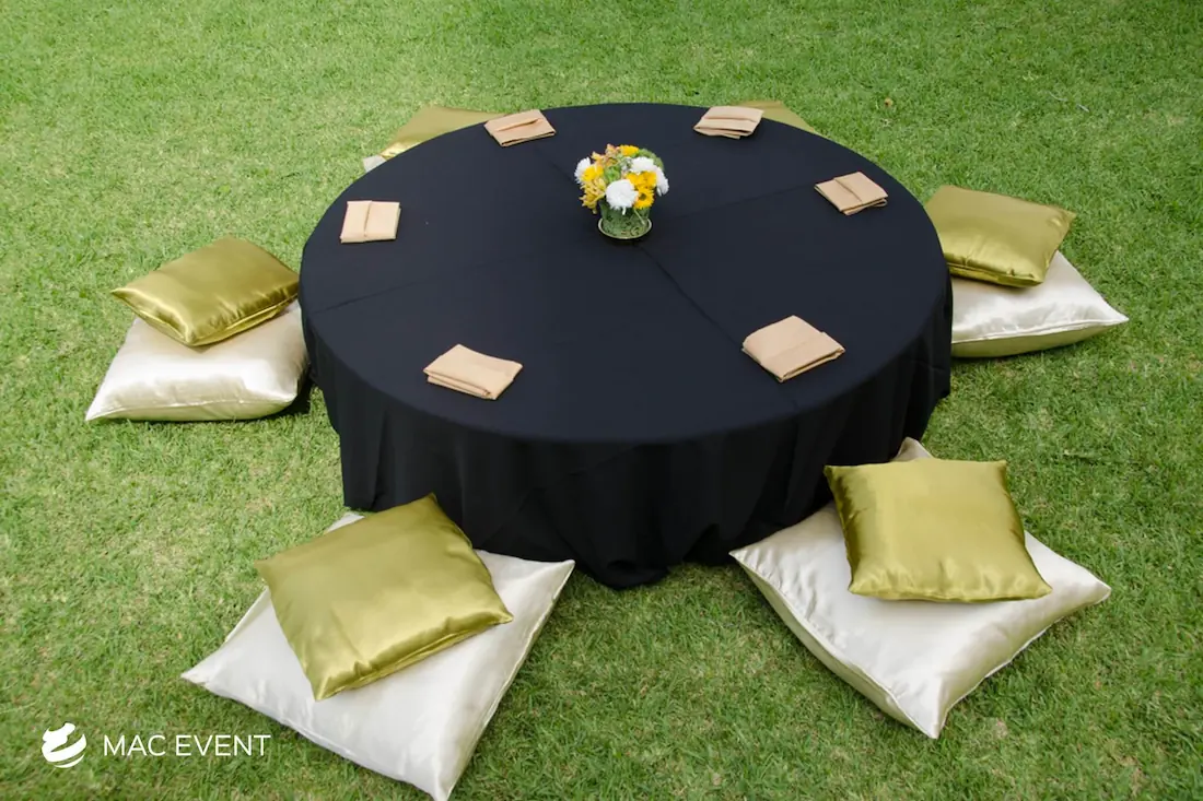 The round coffee table brings elegance and comfort to weddings, parties, and corporate events in Mexico. Its smooth circular design encourages conversation and creates a welcoming atmosphere in lounge or cocktail areas. This event table rental pairs beautifully with sofas, ottomans, and floor pillows, adding balance and flow to your décor. Renting round coffee tables in Mexico allows you to design cozy, stylish spaces where guests can relax and enjoy the celebration. For a refined yet relaxed touch, the round coffee table is the perfect addition to any event setup.