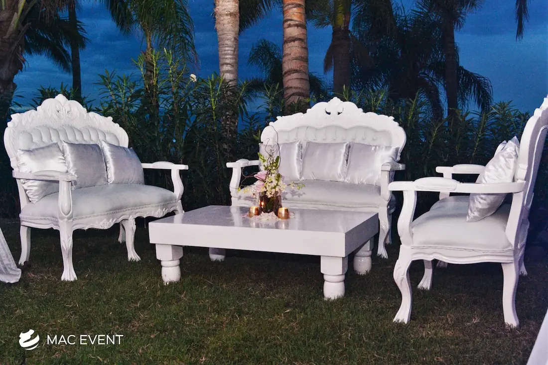The turned leg coffee table adds classic elegance and timeless charm to weddings, parties, and corporate events in Mexico. With its carved legs and refined craftsmanship, this event table rental enhances lounge areas and seating setups with a touch of sophistication. Perfect for pairing with sofas, armchairs, or ottomans, it brings balance and warmth to both indoor and outdoor settings. Renting turned leg coffee tables in Mexico ensures a polished, cohesive look that elevates your event décor. For style, comfort, and graceful design, the turned leg coffee table is a beautiful choice for any celebration.