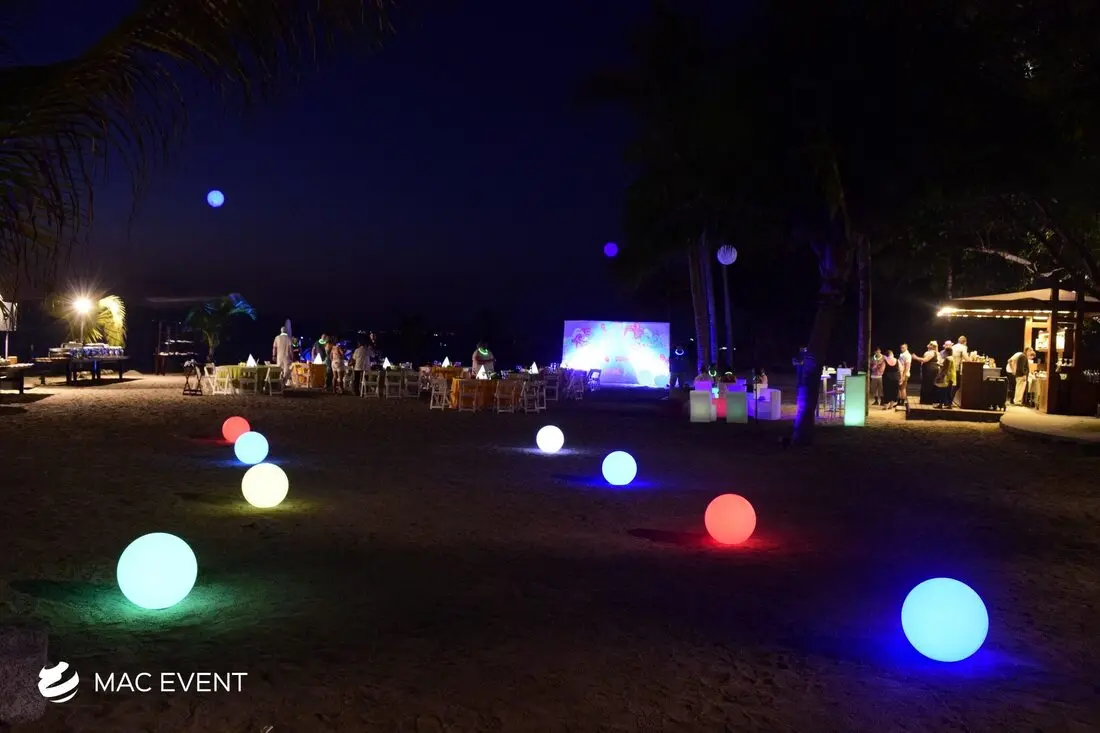 The orb lights add a modern and enchanting touch to weddings, parties, and corporate events in Mexico. With their spherical glow and elegant design, this event lighting rental creates a captivating atmosphere that enhances both indoor and outdoor spaces. Perfect for hanging above dining areas, floating in pools, or accenting garden setups, orb lights bring sophistication and creativity to your décor. Renting orb lights in Mexico ensures professional installation, high-quality lighting, and seamless integration with your event theme. For a stylish and magical ambiance that impresses guests, the orb lights are a perfect choice.