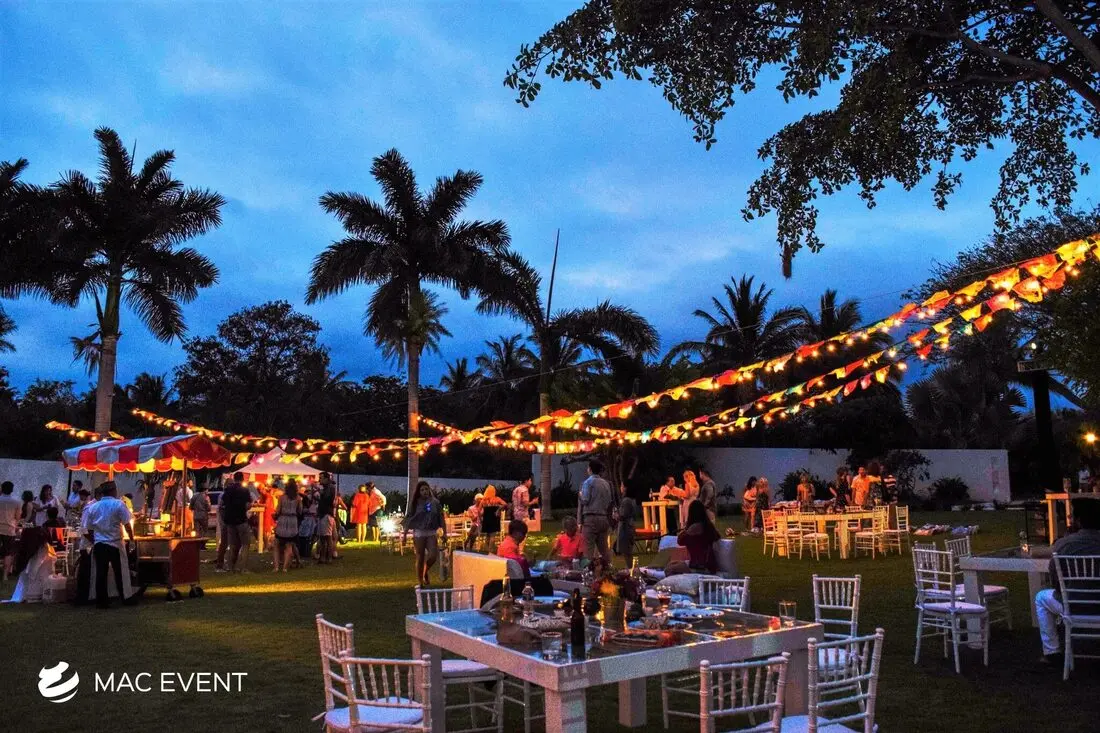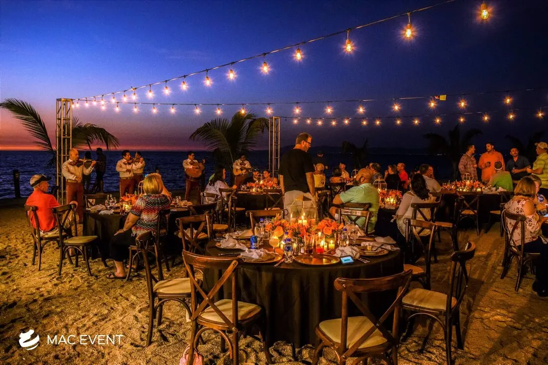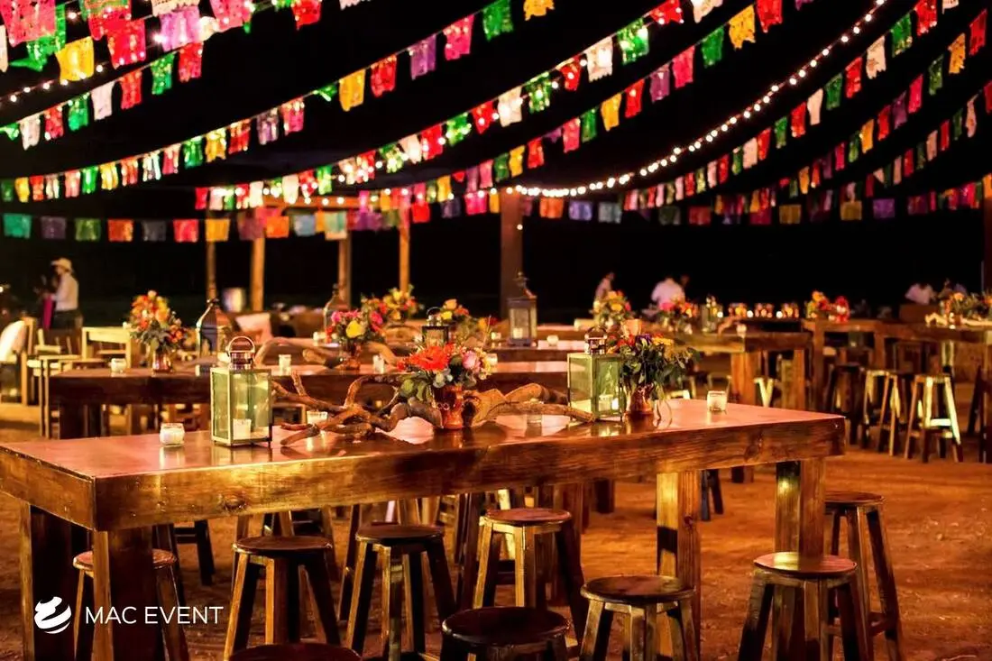 The string lights add warmth and romance to weddings, parties, and corporate events in Mexico. Perfect for beach receptions, garden dinners, or outdoor lounges, this event lighting rental creates a soft, inviting glow that enhances your event’s ambiance. Whether draped above dining areas or woven through trees and structures, string lights bring charm and elegance to any setting. Renting string lights in Mexico ensures professional installation and a cohesive look that complements your décor. For a magical and timeless atmosphere that guests will love, string lights are a beautiful choice for any celebration.