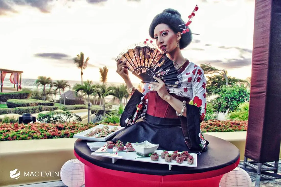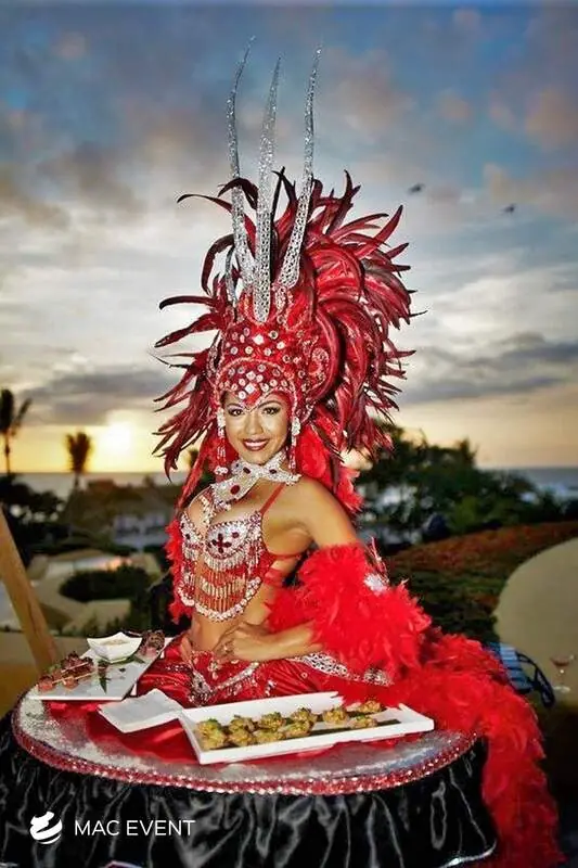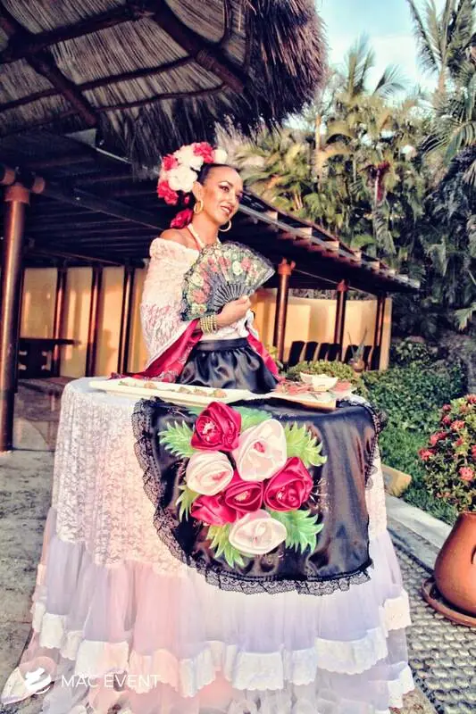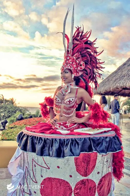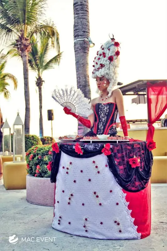 The strolling tables add creativity and elegance to weddings, parties, and corporate events in Mexico. Performed by entertainers wearing beautifully designed costumes with built-in tables, this event entertainment rental offers a unique way to serve drinks, appetizers, or favors. The strolling tables move gracefully among guests, combining functionality with visual impact and interactive charm. Renting strolling tables in Mexico ensures professional performers, stunning presentation, and seamless coordination with your event theme. For a stylish and unforgettable experience that delights guests, the strolling tables are a perfect addition to any celebration.