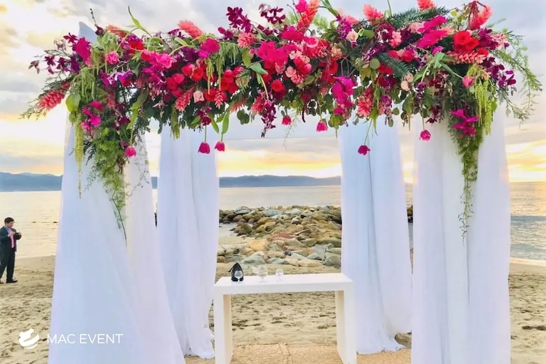 The wedding chuppah adds elegance and deep symbolism to ceremonies in Mexico. Representing love, unity, and the home a couple will build together, this wedding décor rental creates a beautiful and meaningful focal point. Perfect for beach, garden, or indoor settings, the chuppah can be styled with flowing fabrics, floral arrangements, or greenery to match your theme. Renting wedding chuppahs in Mexico ensures professional setup and a cohesive design that enhances your ceremony. For a romantic and spiritual touch that blends tradition with natural beauty, the wedding chuppah is a stunning choice.