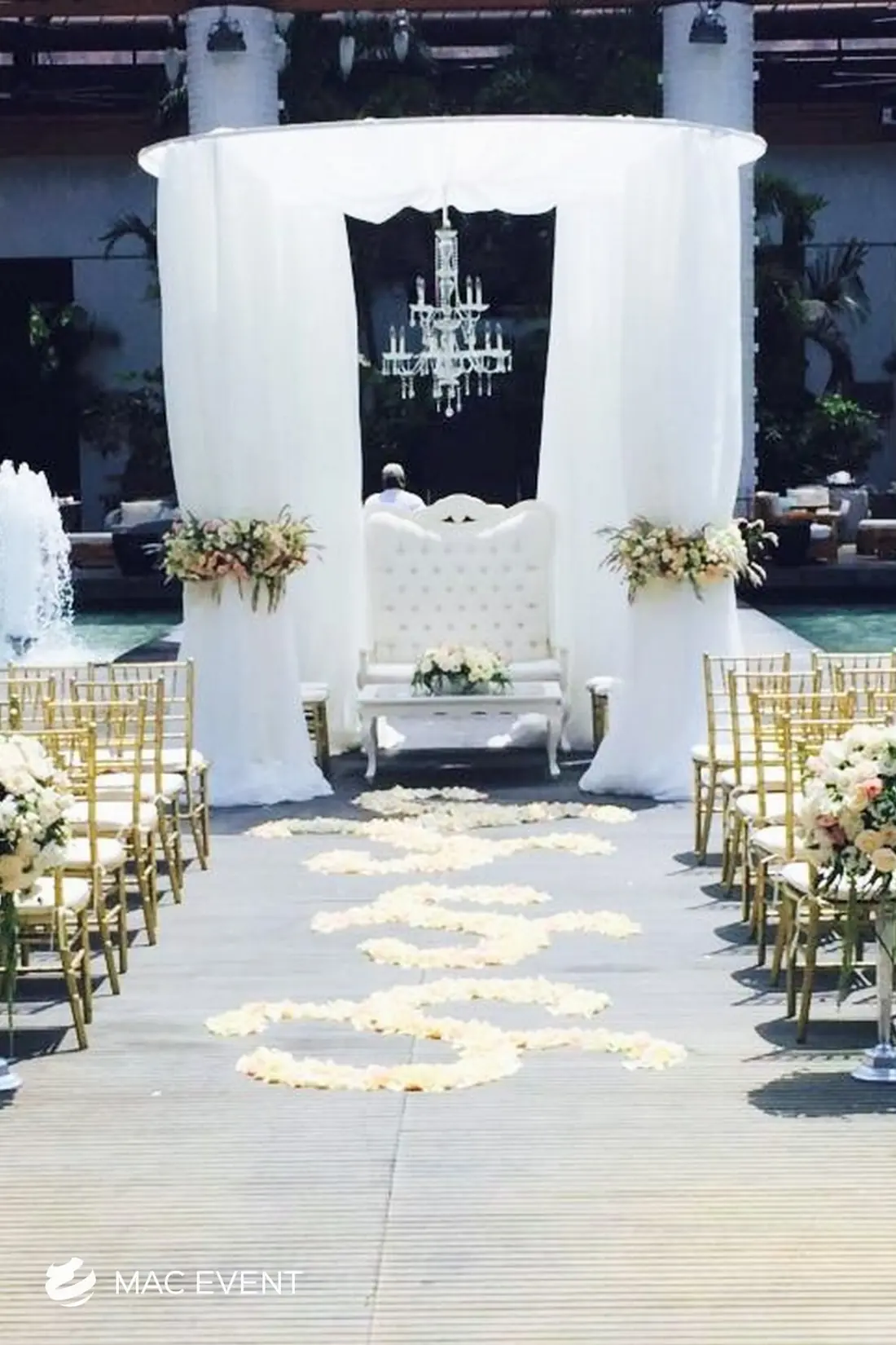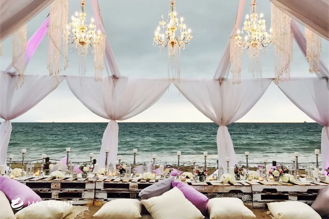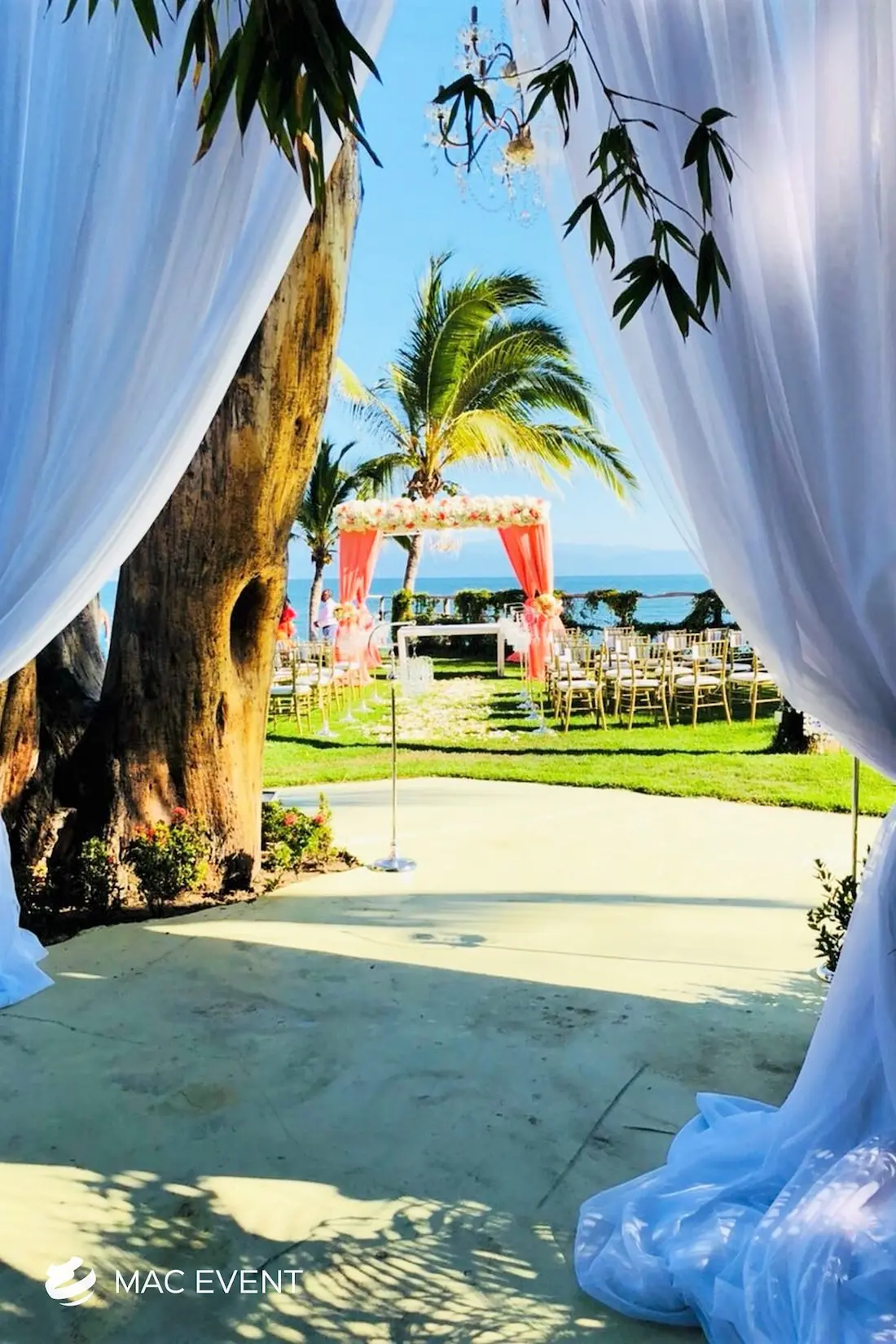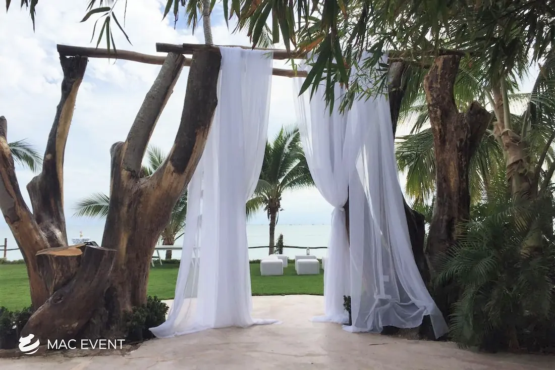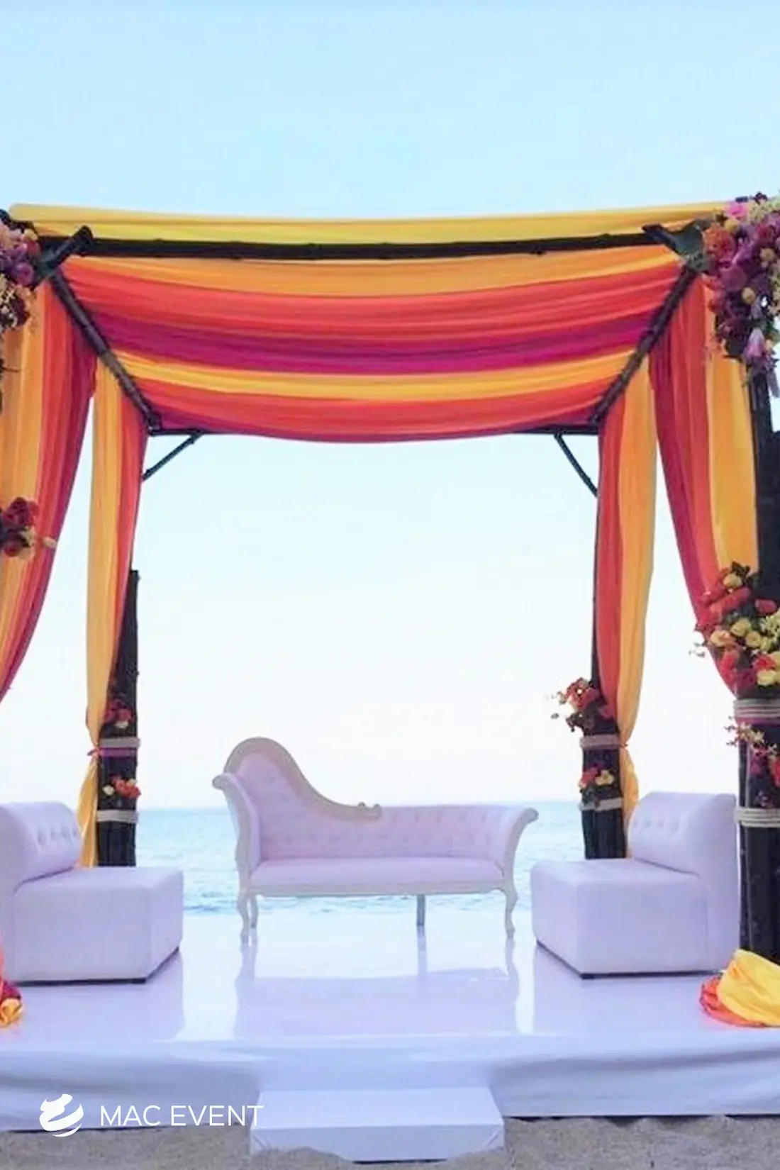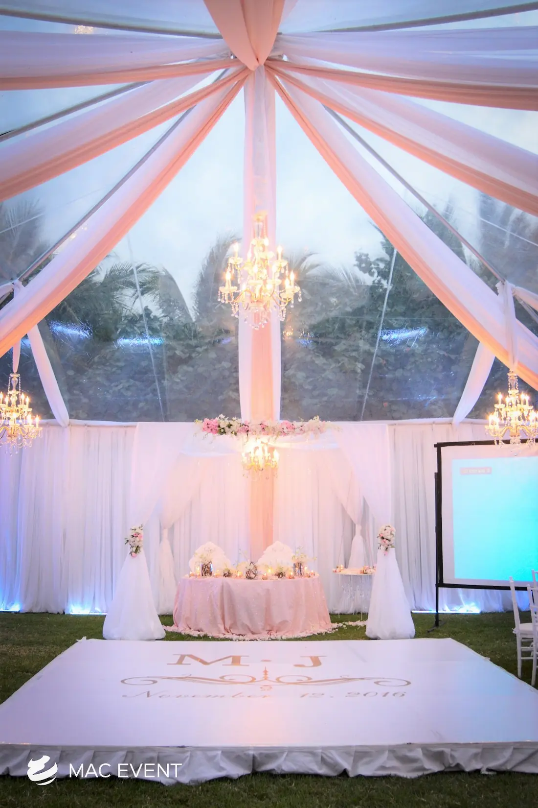 The tent draping adds elegance and softness to weddings, parties, and corporate events in Mexico. Designed to enhance any event tent rental, this decorative fabric transforms the structure into a luxurious and inviting space. Perfect for beach receptions, garden dinners, or formal celebrations, tent draping creates a refined atmosphere while complementing your color palette and theme. Renting tent draping in Mexico ensures professional installation and a cohesive, polished presentation. For a sophisticated and romantic touch that elevates your event décor, the tent draping is a beautiful addition to any setup.